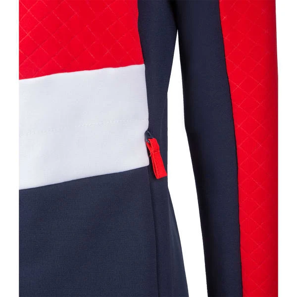 The women’s W POSETTES jacket is a second layer made by DEGRE 7 that provides even warmth under your ski jacket and can also be worn alone. Its refined feminine look is beautifully crafted in a 100% polyester recycled knit.